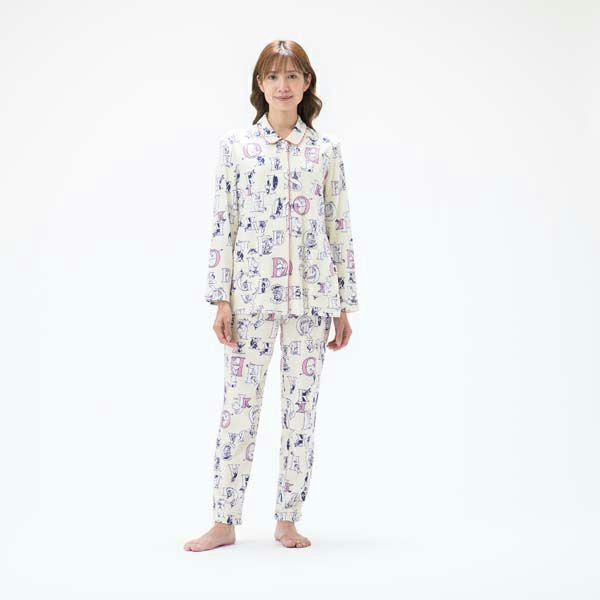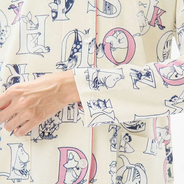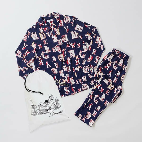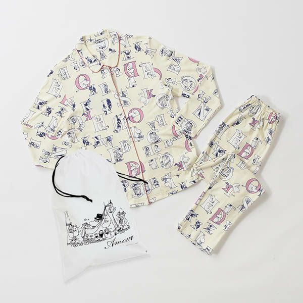 <ラッピング済み>【Amour アムール】×【MOOMIN ムーミン】婦人パジャマ アルファベット&ムーミン谷の仲間たちプリント スムースかぶりパジャマ