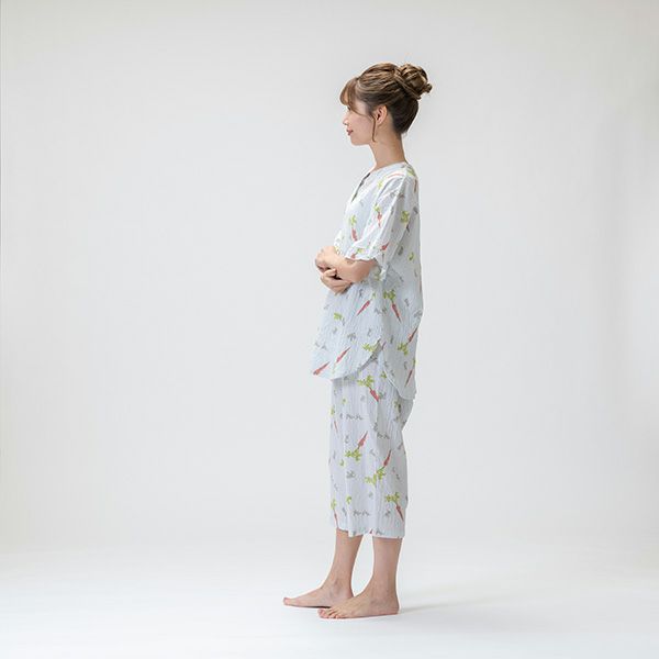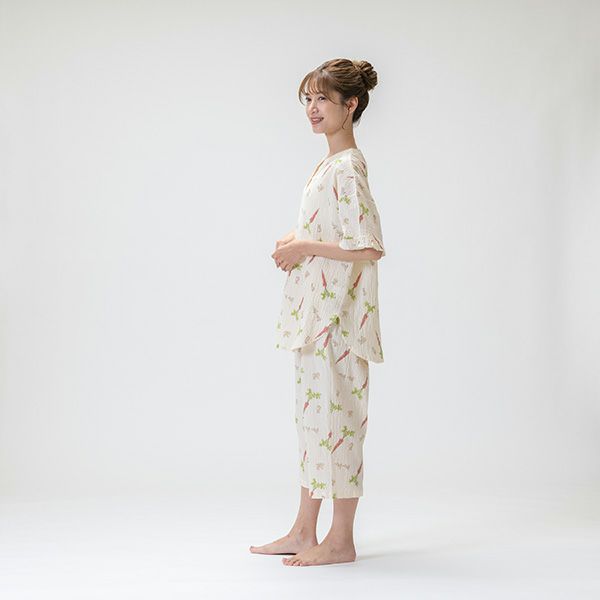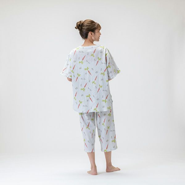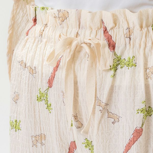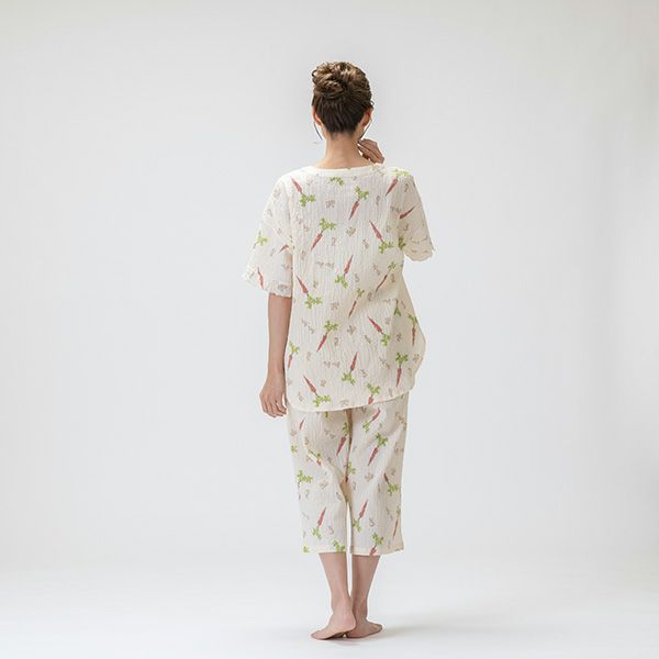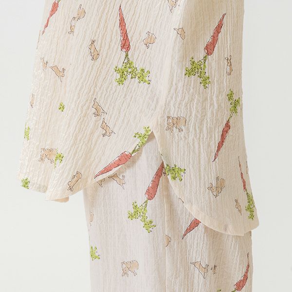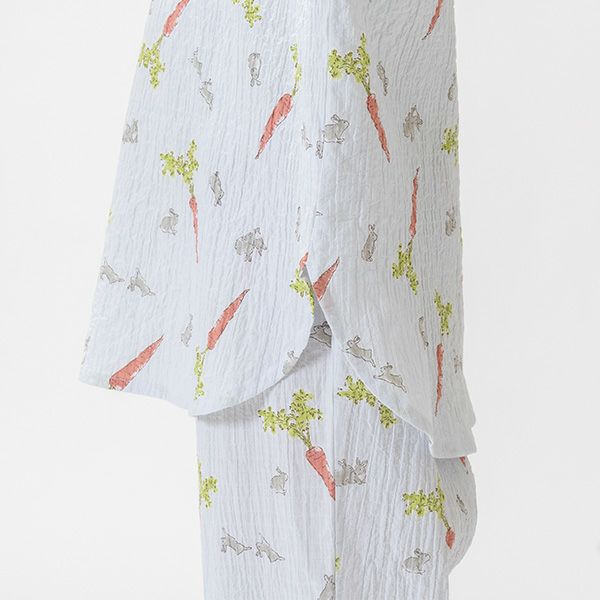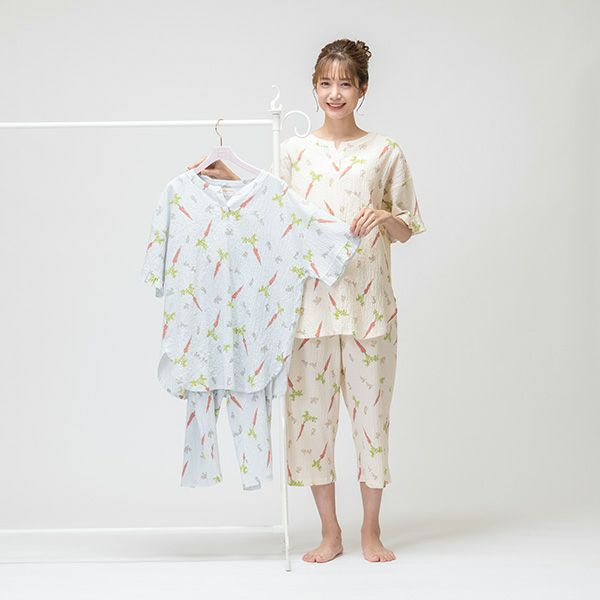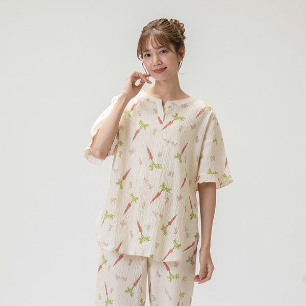 二重ガーゼ シャーリング ラビット&キャロット柄 レディース パジャマ