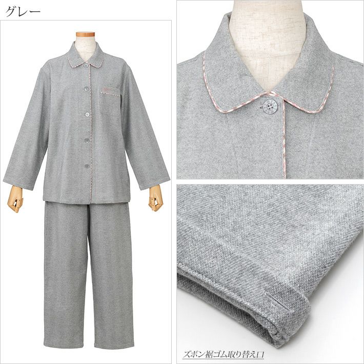【DAKS】 中空糸 ネル シャドーストライプ 前開き 全開 レディース パジャマ