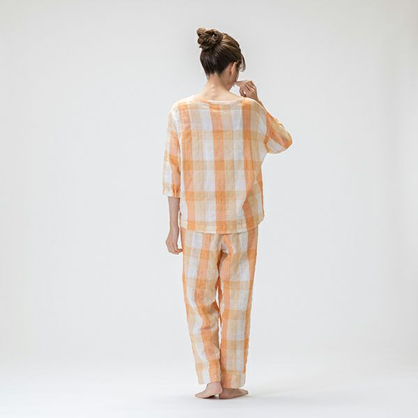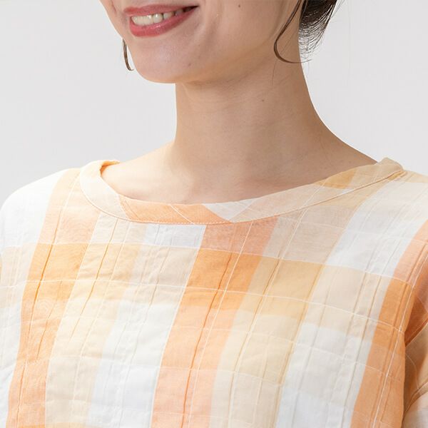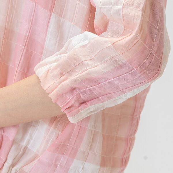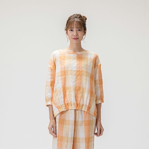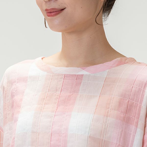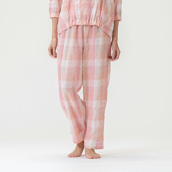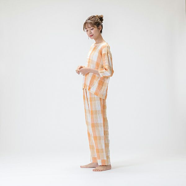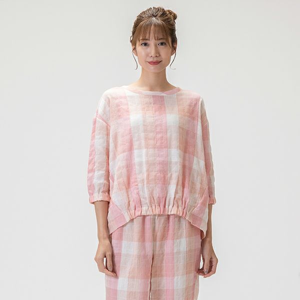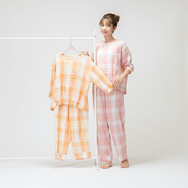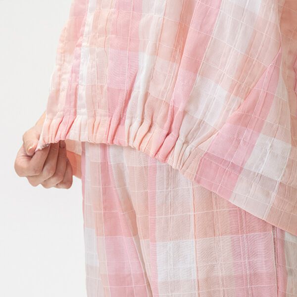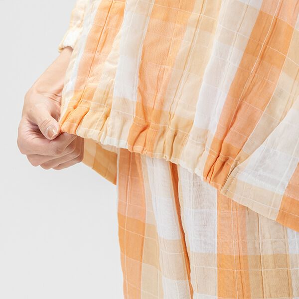 【dreamydiary】 チェック柄 先染め2重ガーゼ シャーリング レディース パジャマ