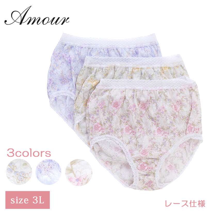 天竺プリント 更紗柄(シルケット) レース使い ショーツ(深履きタイプ 3L)