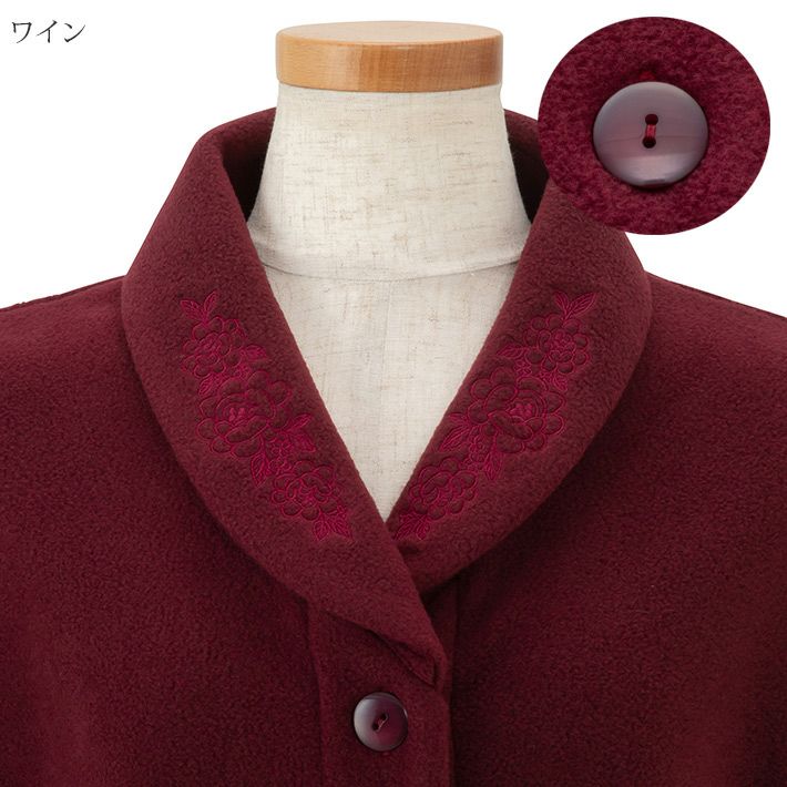■フリース無地 衿に花刺繍 ベスト