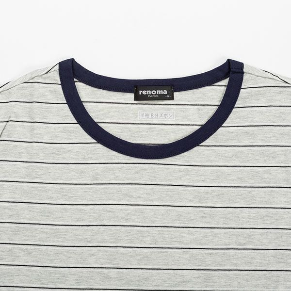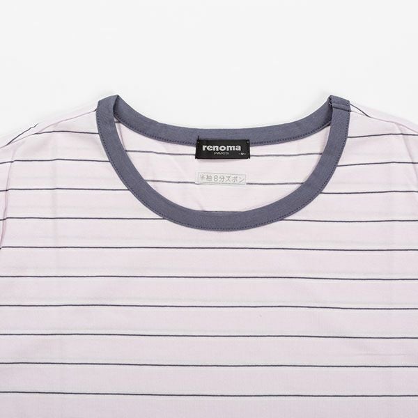 【renoma】 婦人パジャマ 天竺ボーダー × 無地 夏用半袖・8分ズボンルームウェア