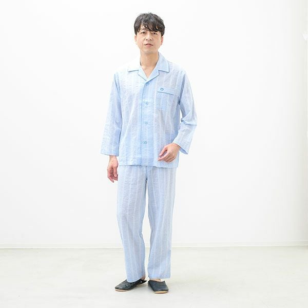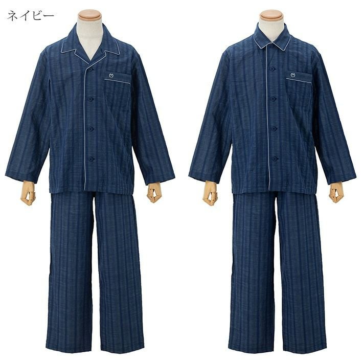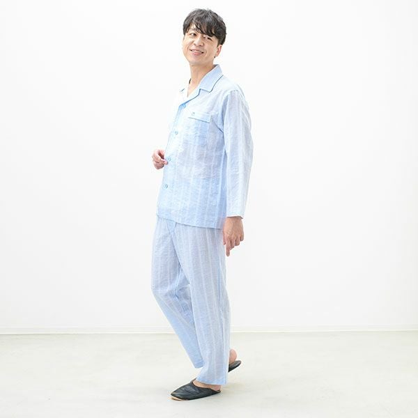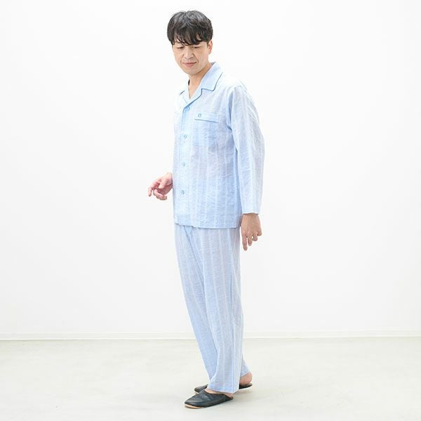 [紳士] 綿 ワッシャー ストライプ柄 パジャマ 【mila schon】