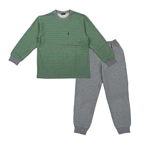 紳士用 ルームウェア 部屋着 男性用 紳士 上下セット セットアップ 起毛 プレゼント 贈り物 名入れ 【ELLE HOMME/エルオム】先染 裏毛起毛 メンズ パジャマ 上着 ボーダー ズボン 無地