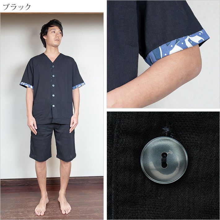 素材は綿100%で吸汗性が良いので、ゆったりとしたくつろぎの時間だけでなく、そのまま就寝して頂くこともできます。