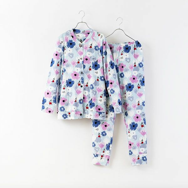 <ラッピング済み>【MOOMIN ムーミン】×【Amour アムール】スムースプリント フラワーモチーフ レディス 上下セット パジャマ