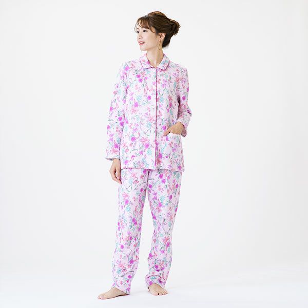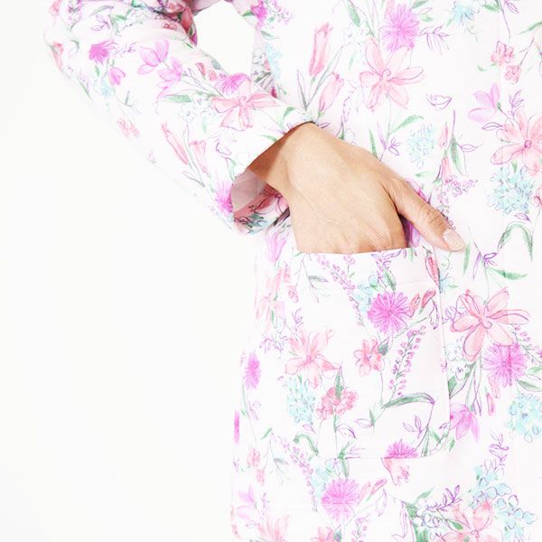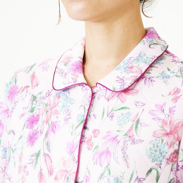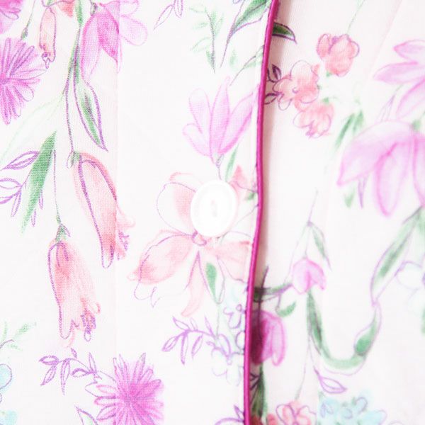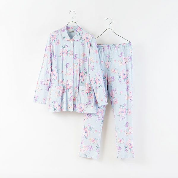イタリア、ミラショーン社のオリジナル企画。滑らかな肌触りの60スムースニットを使用したフラワープリントのナイトウェア。