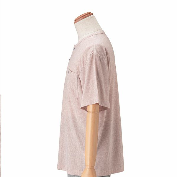 素材は再生繊維(リヨセル)100%。とても柔らかい肌触りで、伸縮性もあります。光沢感とドレープ性があり、吸湿性・速乾性が高い特徴もあります。身に付けたときのフィット感や心地良さを感じることができます。