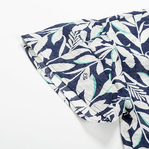 【ELLE】婦人パジャマ リーフプリントのリップル半袖パジャマ