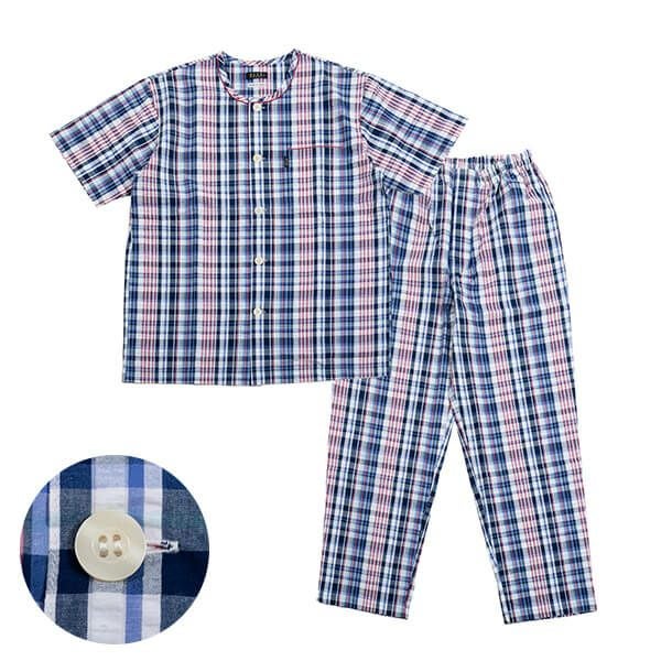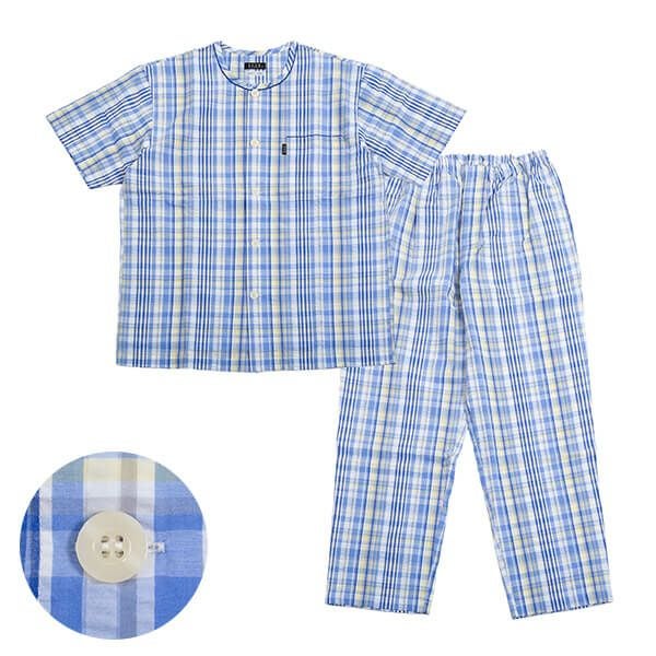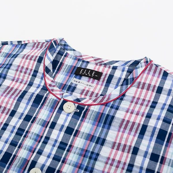 [紳士]先染めサッカーチェック半袖パジャマ【ELLE】