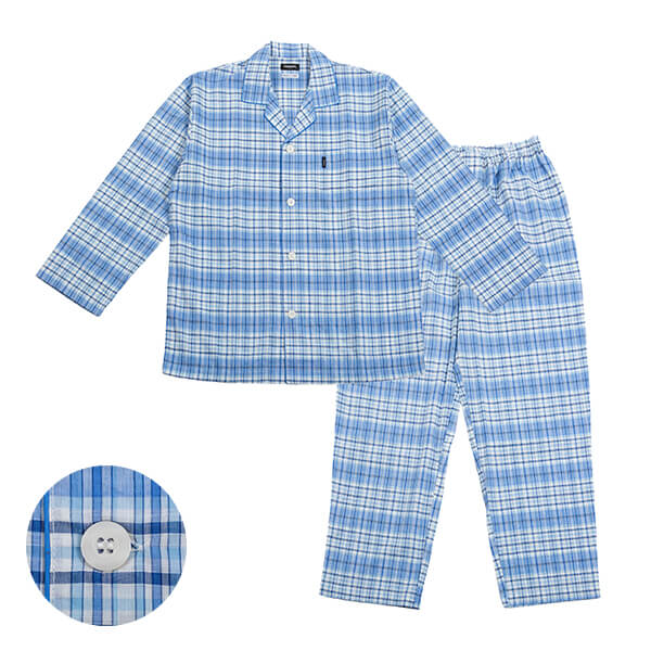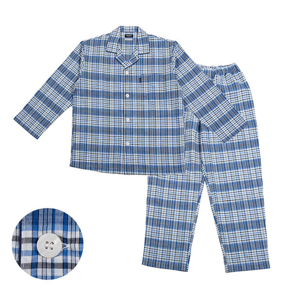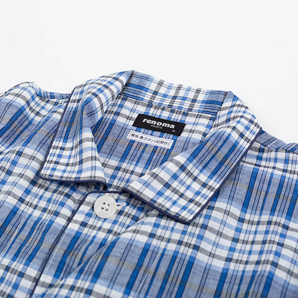 【renoma】ワッシャーチェック柄 メンズ パジャマ ブランド レノマ 春 夏 長袖長ズボン 綿100%