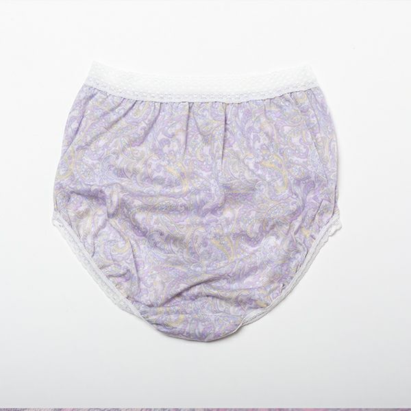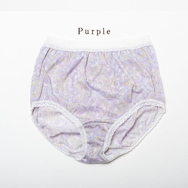 【Amour/アムール】天竺プリント ペイズリー柄(シルケット) レースタイプ 深履き ショーツ LL