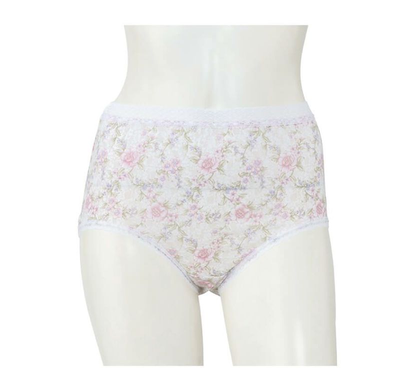 天竺プリント 更紗柄(シルケット) レース使い ショーツ(深履きタイプ 3L)