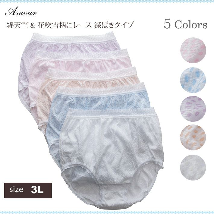 天竺 花吹雪柄 レース使い ジャストウエスト ショーツ(深ばきタイプ・3L)
