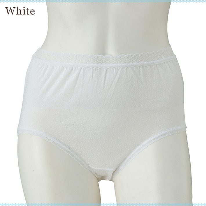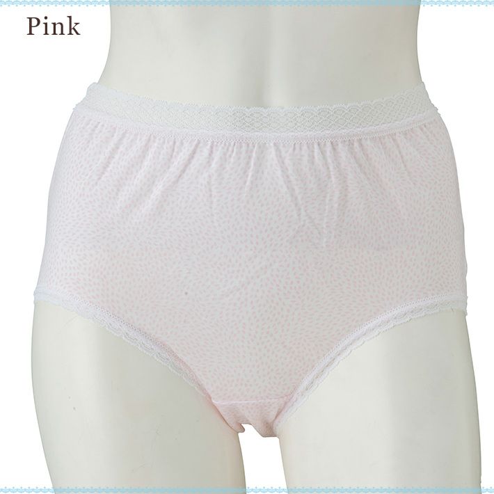 ●素材は、綿天竺。やや薄い仕上りの編み組織で下着に適しています。 ●ウエストと足口は白のストレッチレース。ゴム跡が身体に残りにくく、柔らかい履き 心地。アウターにも響きにくい。 ピッタリサイズのショーツは血行を妨げないので快適にすごしていただけます♪ |
