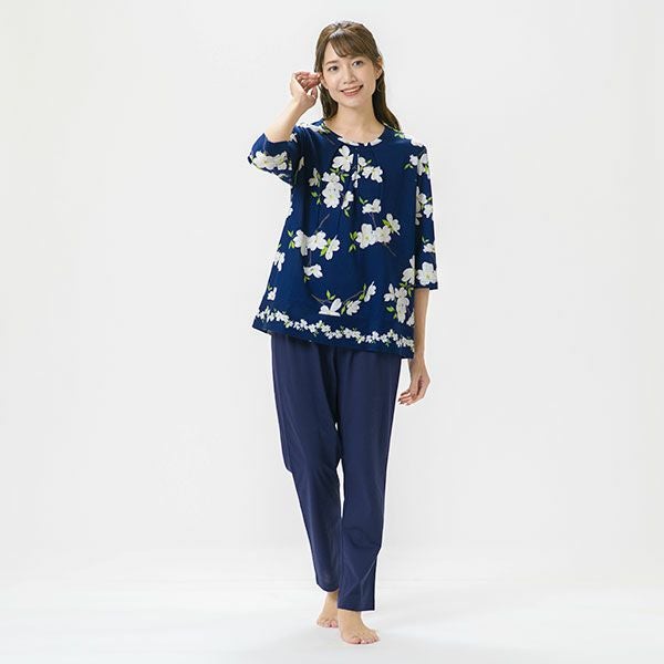 日本の春を告げる花、「ハナミズキ」の美しいプリントナイトウェア 婦人パジャマ
