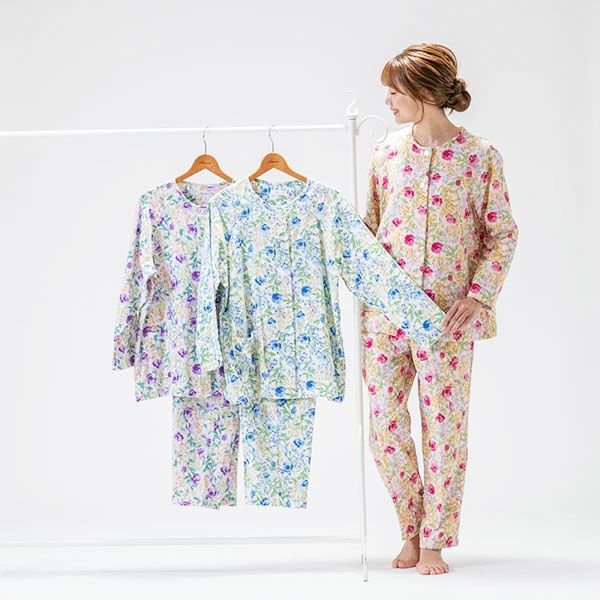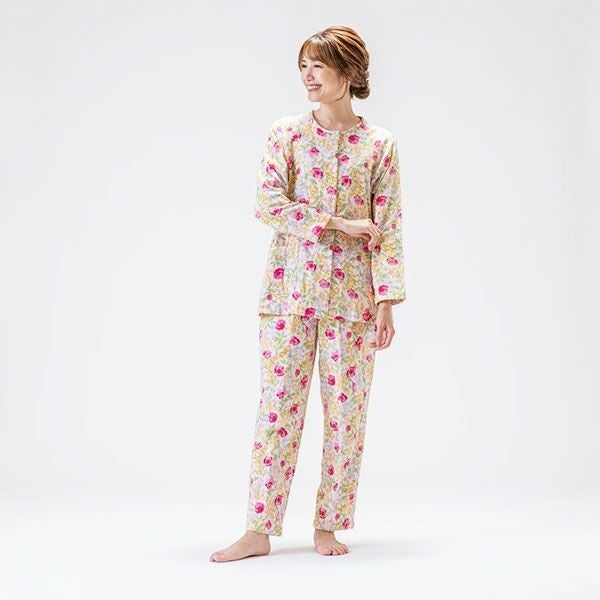 上品な花柄の綿100%二重ガーゼパジャマです。