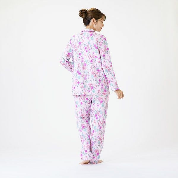 イタリア、ミラショーン社のオリジナル企画。滑らかな肌触りの60スムースニットを使用したフラワープリントのナイトウェア。