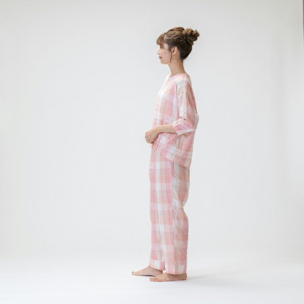 他の画像を見る セール 送料無料 レディース 【dreamydiary】 チェック柄 先染め2重ガーゼ シャーリング レディース パジャマ かぶり 7分袖長ズボン ルームウェア かわいい 春 秋 上下セット ギフト プレゼント 定価 ¥ 12,100 のところ ¥ 6,490 税込 在庫切れ カートに入れる お気に入りに登録する (0)