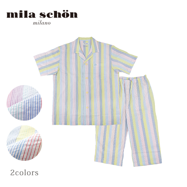 【mila schon】サッカー マルチストライプ メンズ 上下セット 半袖7分ズボン