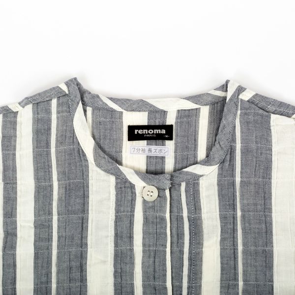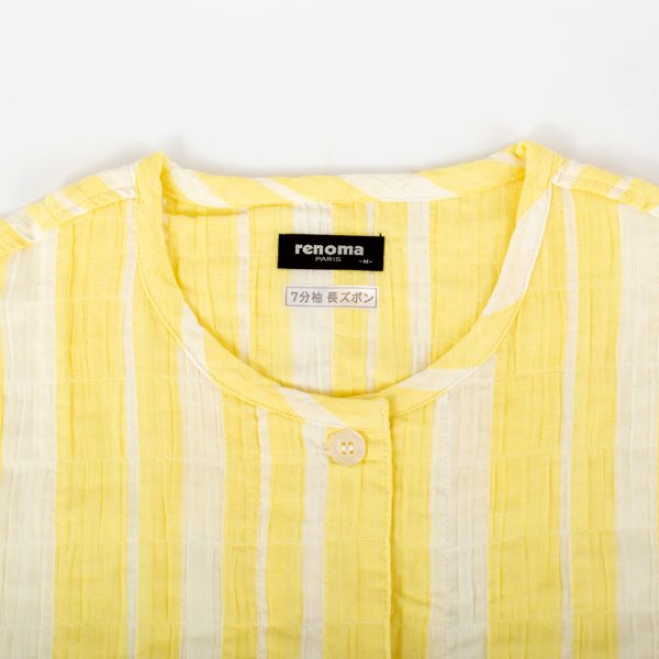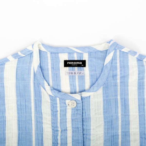 【renoma】 先染め 二重ガーゼ シャーリング ストライプ 七分袖 レディース パジャマ