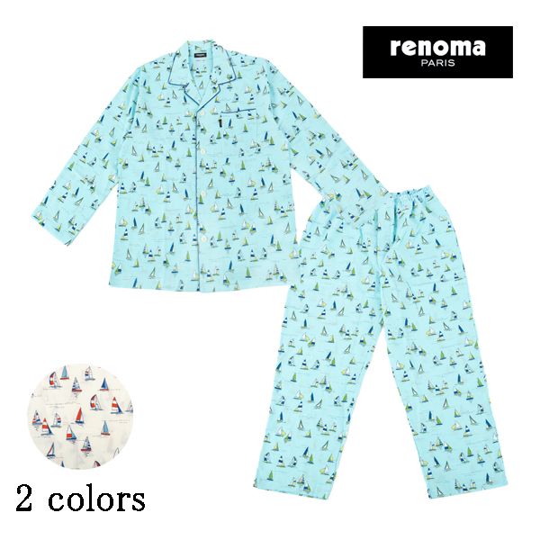 【renoma】スラブ混 ワッシャー ヨット柄 プリント メンズ パジャマ