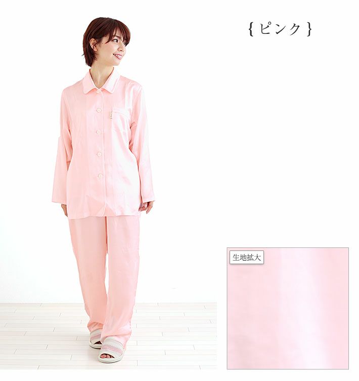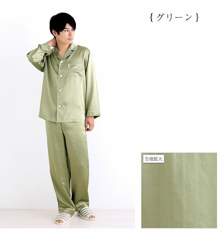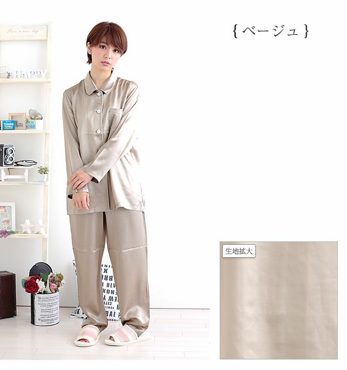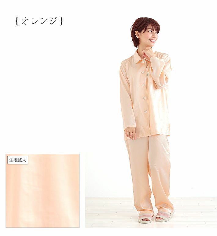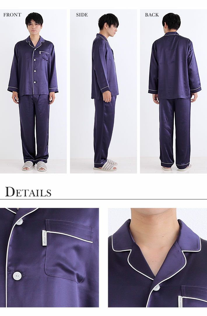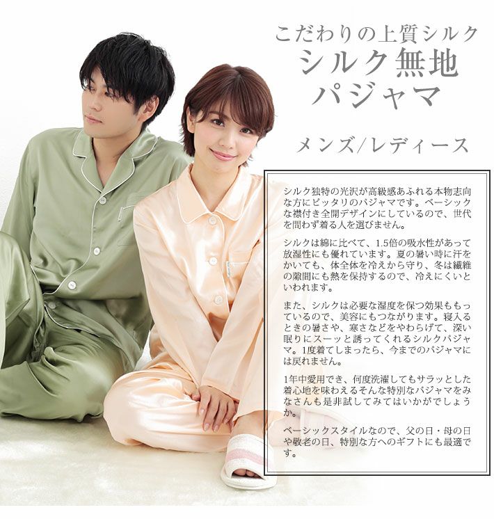 シルク独特の光沢が高級感あふれる本物志向な方にピッタリのパジャマです。