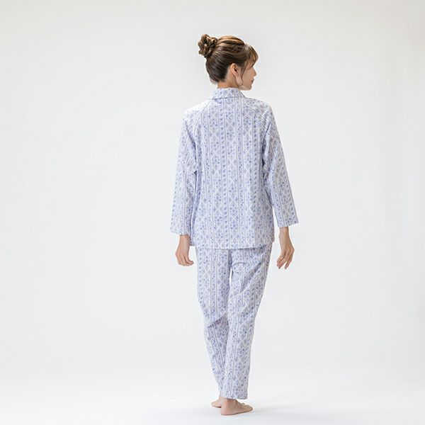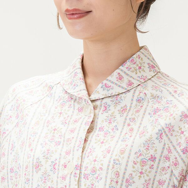 【Amour アムール】天竺プリント 更紗ストライプ柄 レディース パジャマ