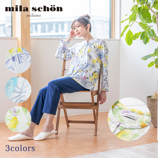 【mila schon】天竺プリント 無地 レディース パジャマ秋 春 綿100%  ギフト ルームウェア ナイトウエア