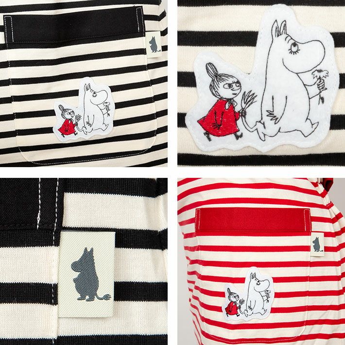【ムーミンキャラクター】ハウスワッペン ムーミン&リトルミィ ワッペン ボーダーエプロン  レディース 背当てタイプ 後身頃
