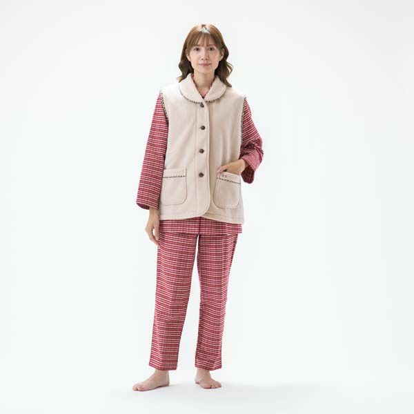 シンプルな無地フリースで仕立てたベストです。