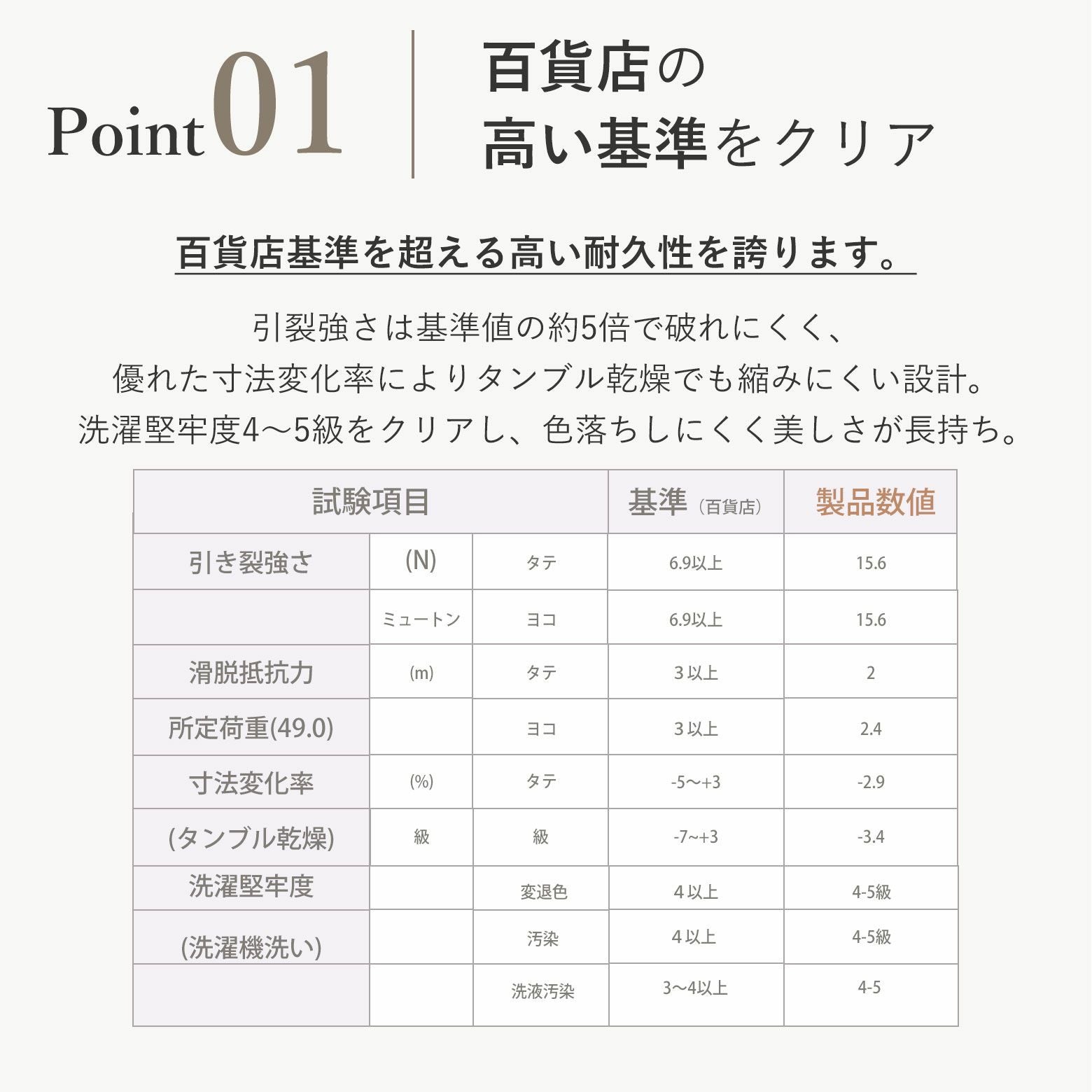 | 生地の伸縮 | 伸縮性はありません。 | 生地の透け感 | 透け感はありません。 |