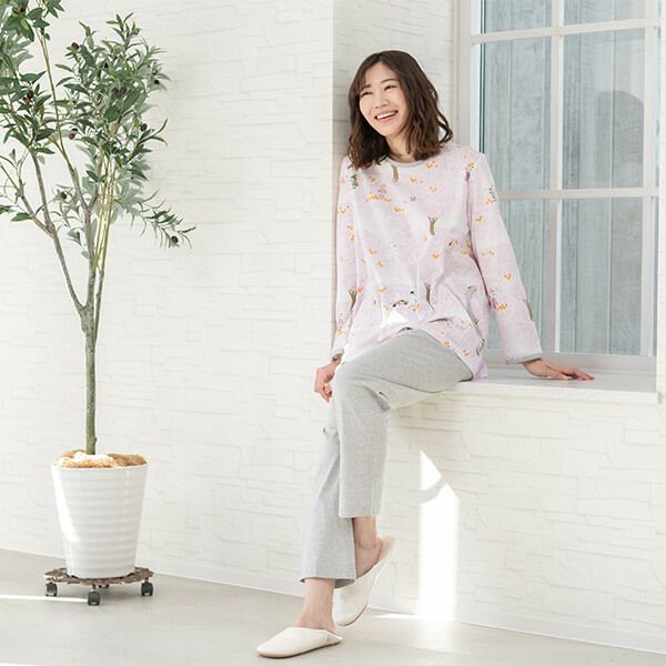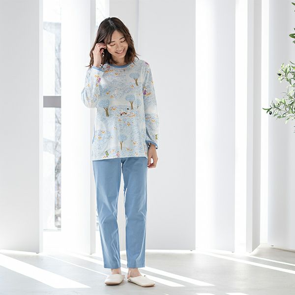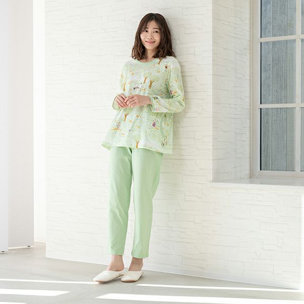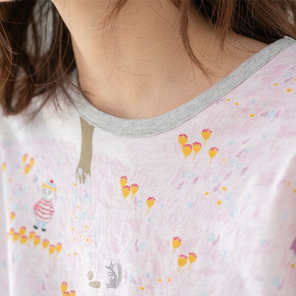 【MOOMIN ムーミン】×【Amour アムール】天竺 プリント(草原) 無地 レディース パジャマ