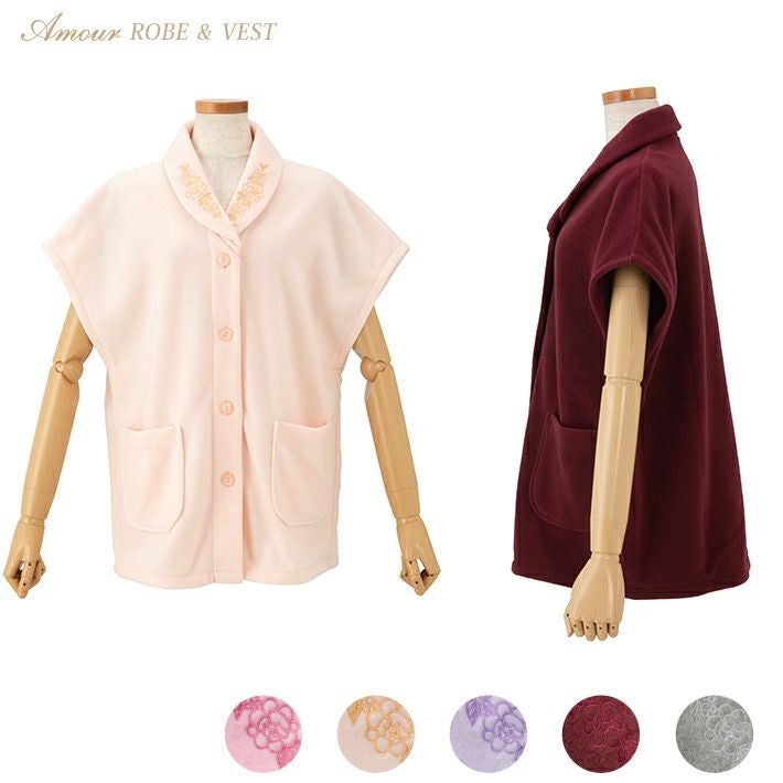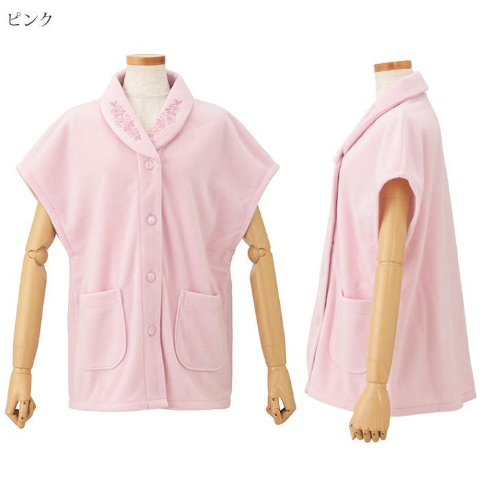 ■フリース無地 衿に花刺繍 ベスト