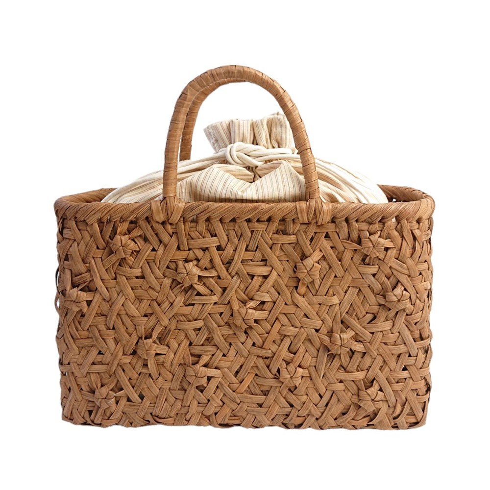 ●素 材:【巾着】表:麻100%、裏:綿100% 【カゴ】山ぶどう樹皮(天然素材)