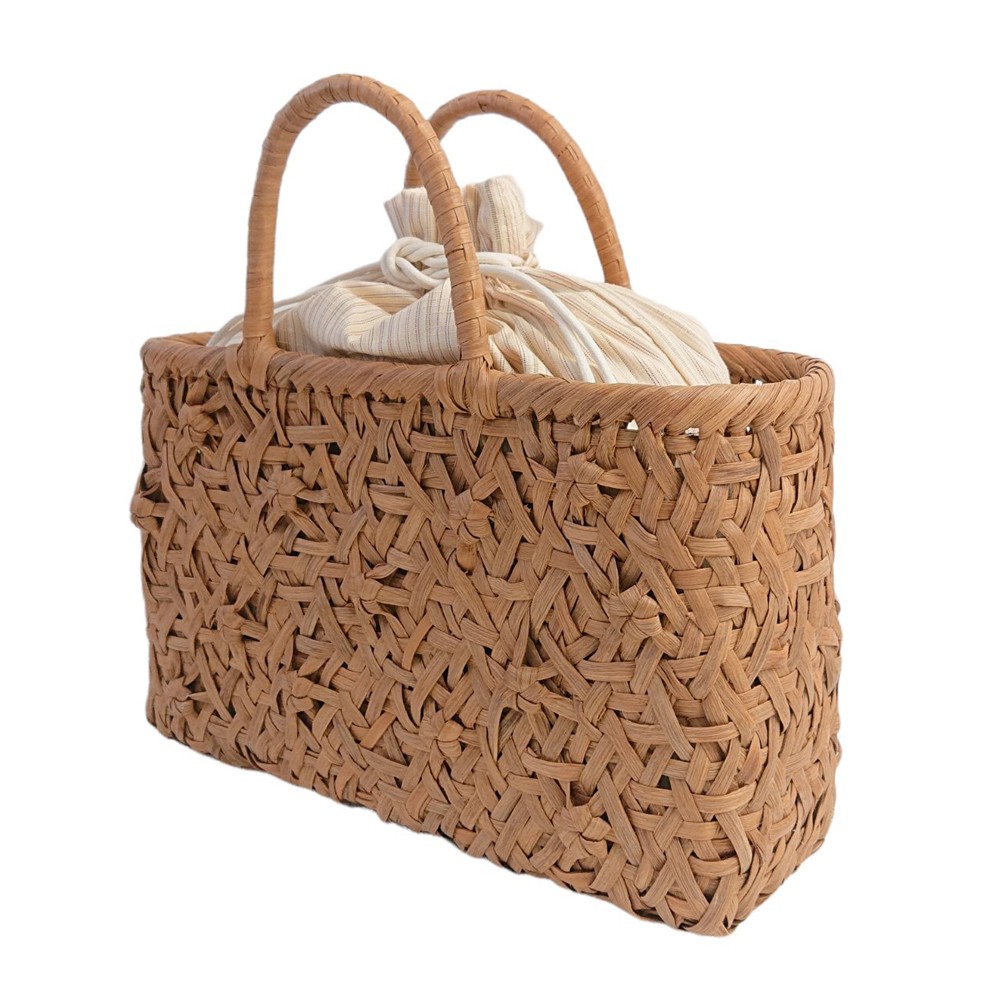 軽くて丈夫でお洒落な籠バッグ 山葡萄かごバッグ K3708A 巾着袋付き 山ぶどう やまぶどう 手作り さんび