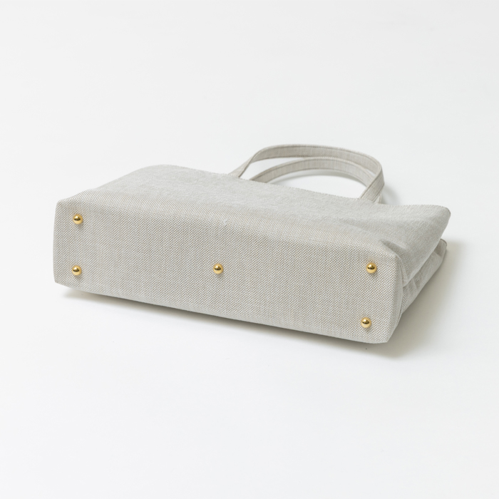 底鋲を施すことで、バッグが直接地面に触れにくく、汚れを防ぎます。