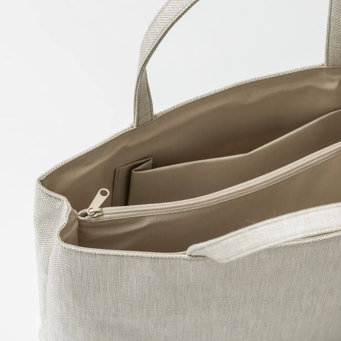 ファスナー付の間仕切りポケットで細かなものの収納に便利 トートバッグ横型 No.7351A 無地 【シルバー】 ポケット&間仕切り付 さんび 日本製