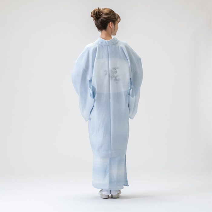 程よい透け感とロング丈のデザインで、うしろ姿もすっきりとしています。