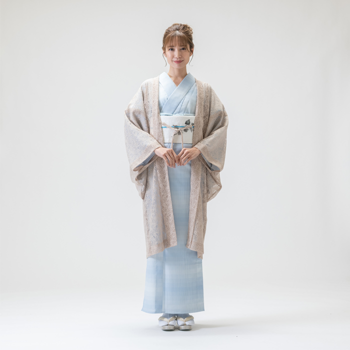 共布で仕立てた紐で結んで頂きます。また、お持ちの羽織紐へ交換も可能です。