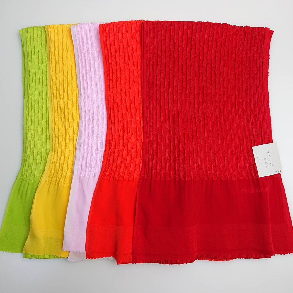 ボリュームがあり、絞りの帯揚と違い、全体に無地染めで染まっていますので、より色目が引き立ちます。