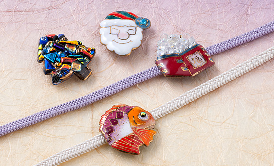 遊び心ある、色彩豊かな七宝焼きの帯留め