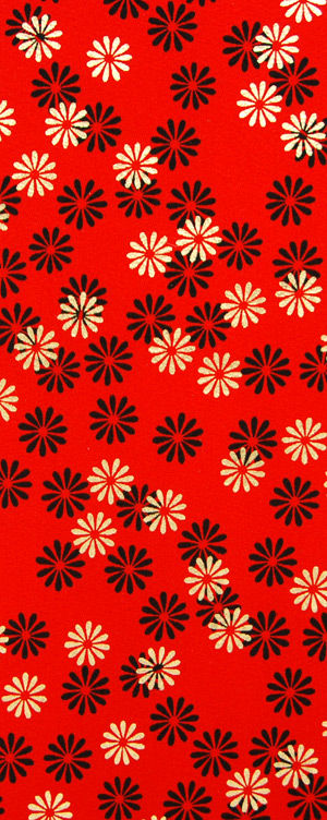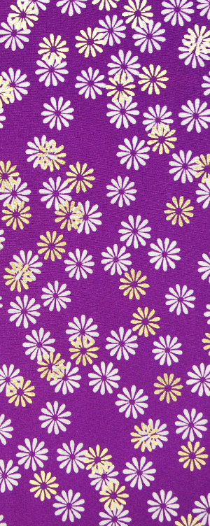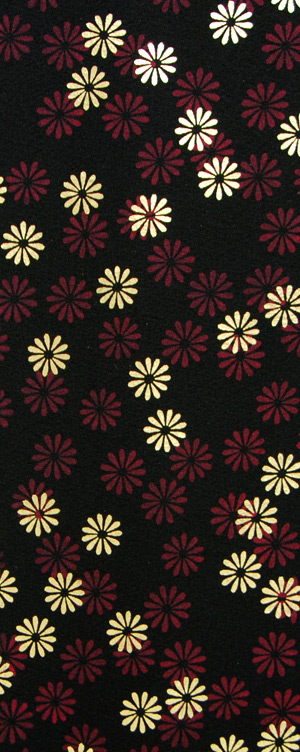黒地に、ワインとゴールドの小菊柄がシックな大人っぽい雰囲気で素敵です。 黒地なので、ゴールドの小菊がクッキリと映えて、遠くから見ても目を引きます。