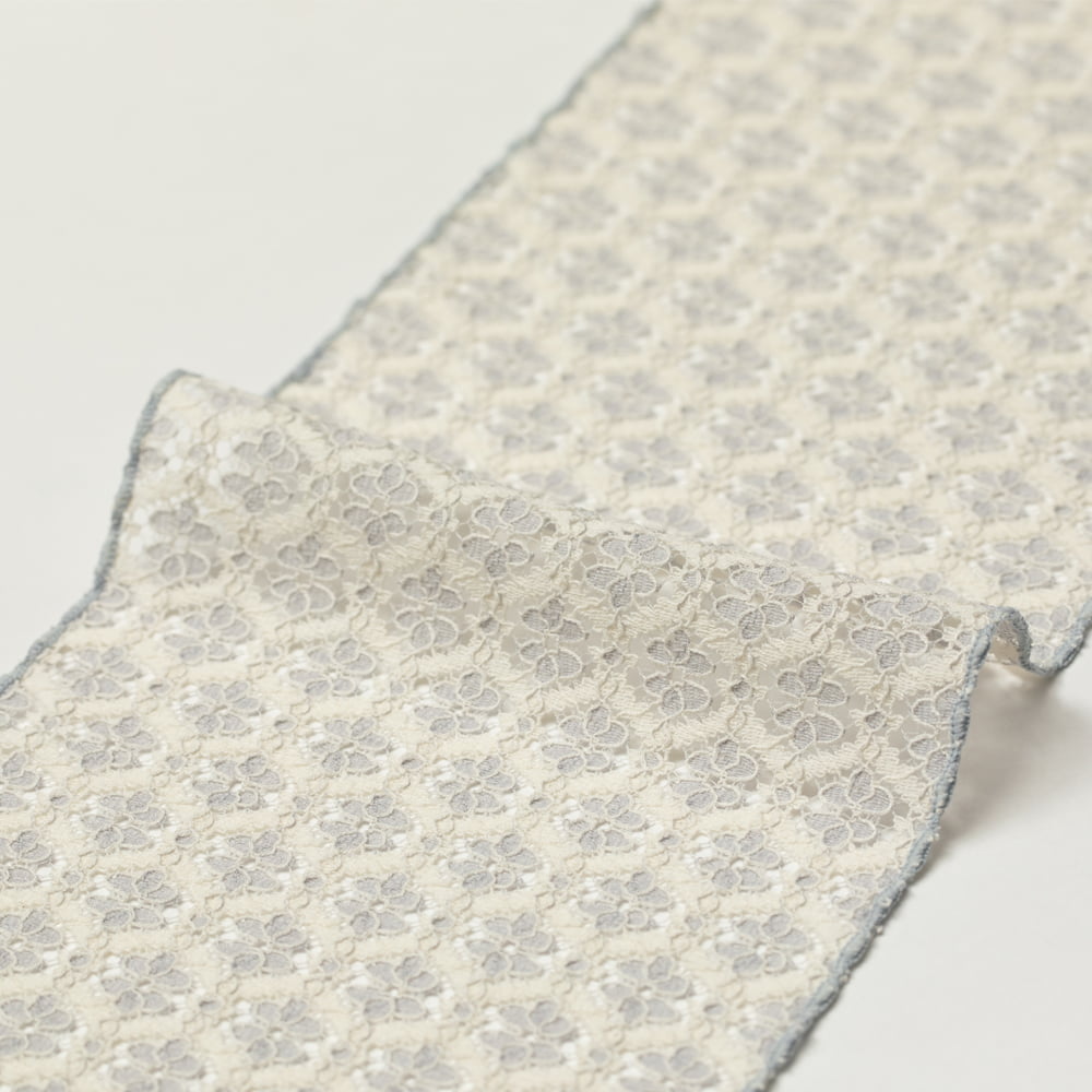 華を模った菱柄の柔らかい雰囲気が、顔周りを優しく印象付けます。