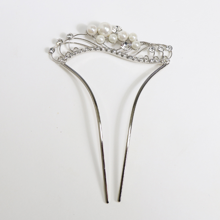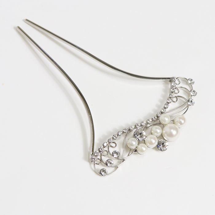 季節を選ばないパールかんざし 多くのシチュエーションで使えます パール・真鍮・ガラスかんざし 【シルバー】 波型 髪飾り 簪 かんざし イチョウ型 銀 入卒用 着物用髪飾り