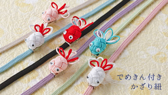 小田巻の金魚帯留めと二分紐のセットです。二分紐は細めでシンプル。金魚は取り外せますので、それぞれ単品としても使って頂けます。紬や小紋などの普段の夏きものや、浴衣のオシャレにどうぞ。