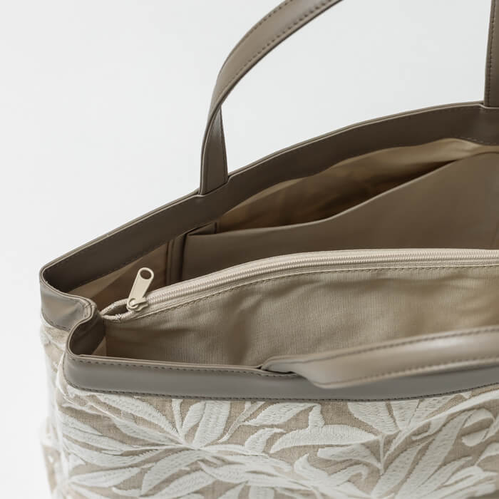 ファスナー付の間仕切りポケットで細かなものの収納に便利 トートバッグ横型 No.7310A 【ベージュ】 ポケット&間仕切り付 さんび 日本製