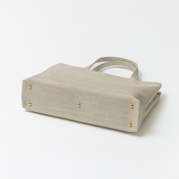 底鋲を施すことで、バッグが直接地面に触れにくく、汚れを防ぎます。