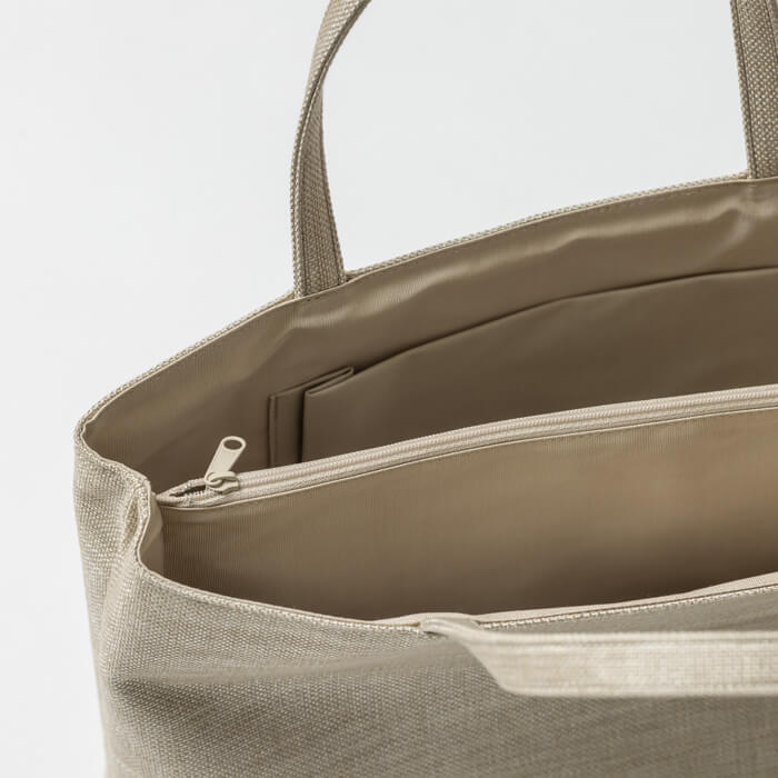 ファスナー付の間仕切りポケットで細かなものの収納に便利 トートバッグ横型 No.7351B 無地 【ゴールド】 ポケット&間仕切り付 さんび 日本製